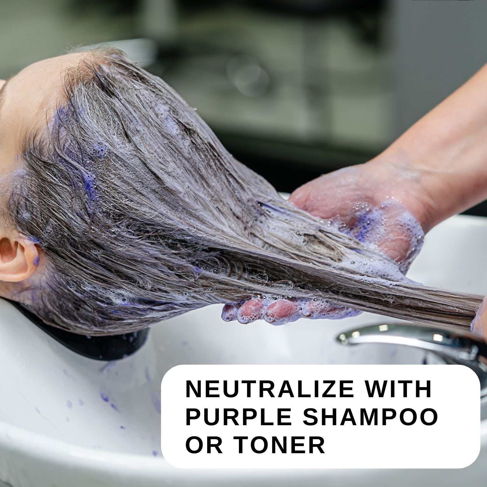 - Use a purple or blue toning shampoo at the bowl, or