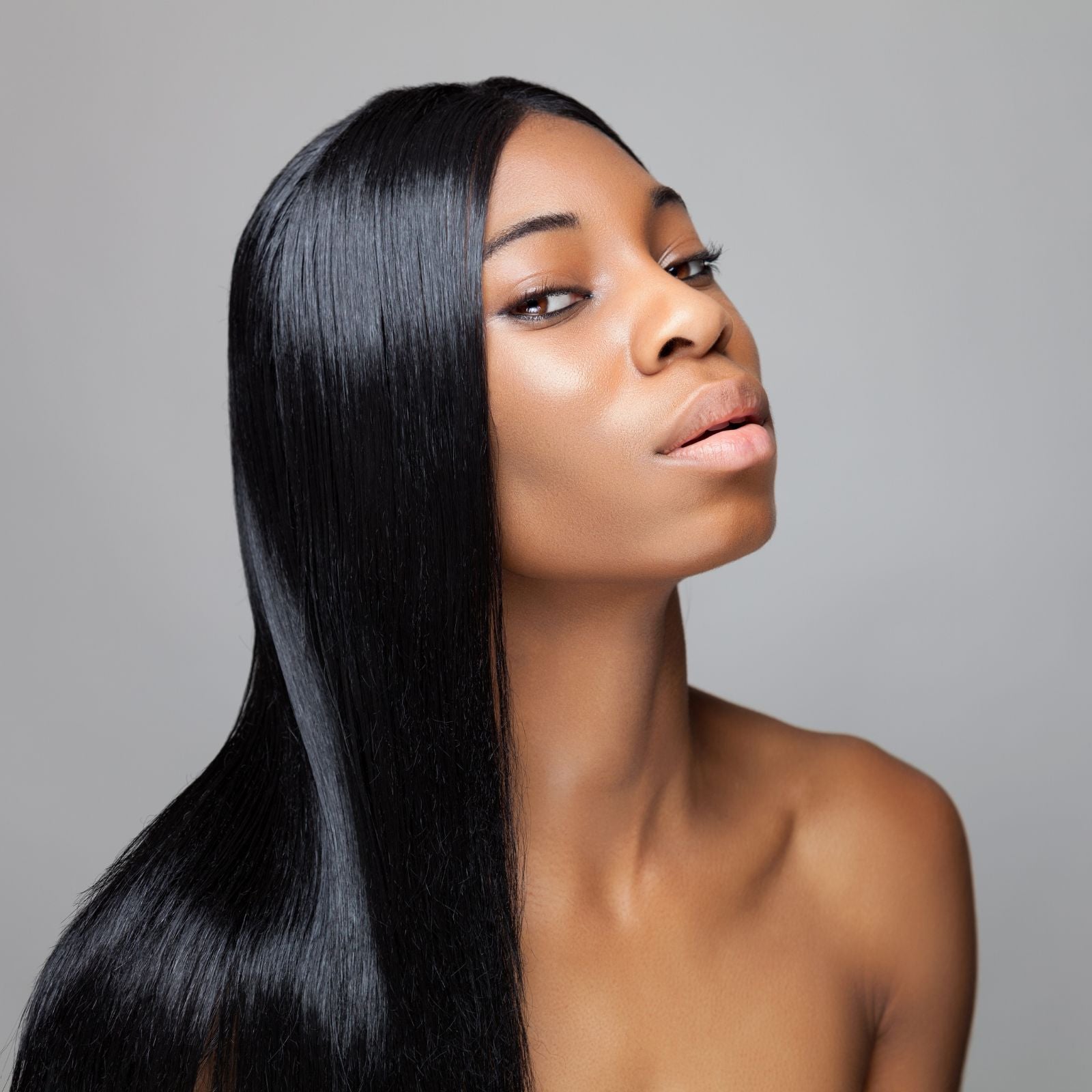 - Flat iron in small sections, making 4–6 passes per section until the hair is silky and smooth.